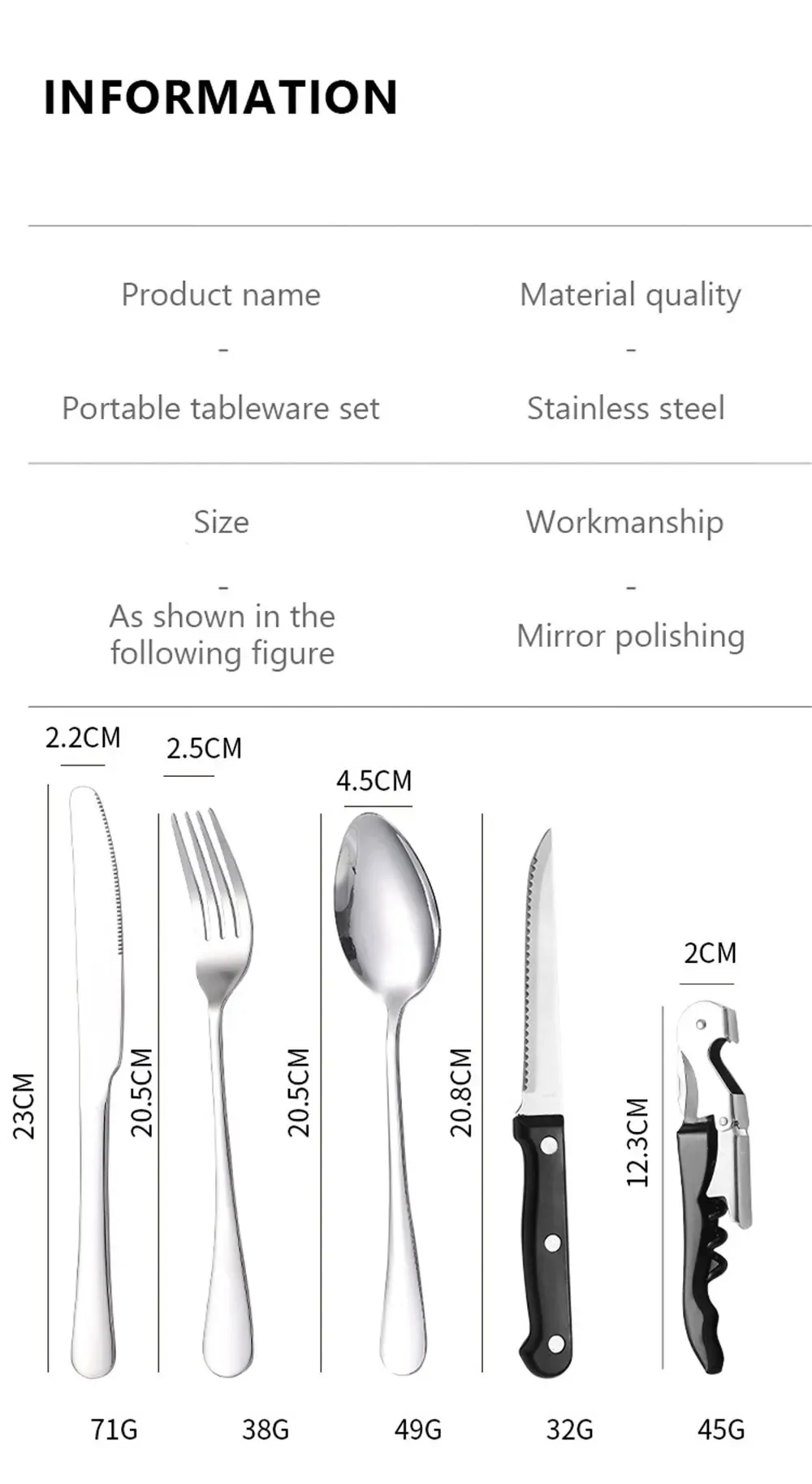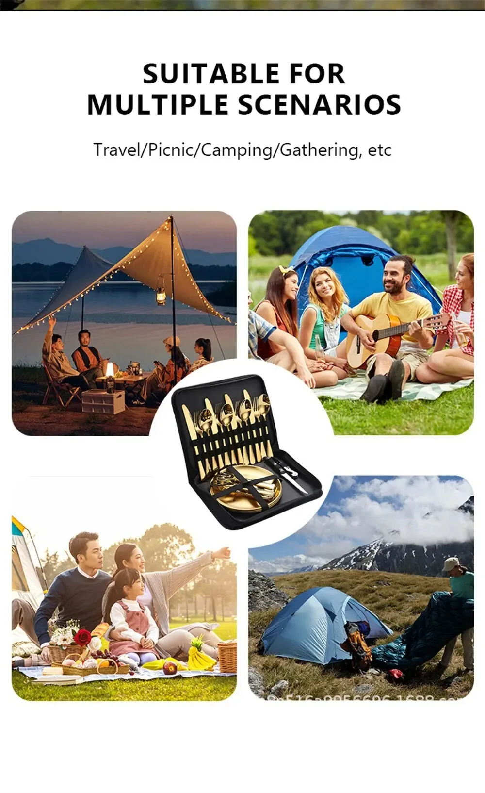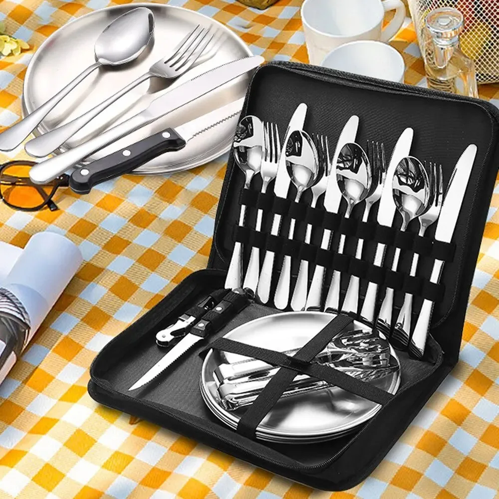 20PCS Camping Tableware Set Portable Cutlery Kit Stainless Steel Picnic Set with Bag