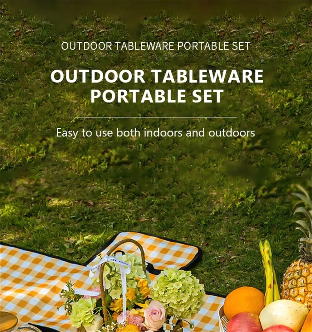 2Person Utensil Picnic Set with Plate Spoon Knife Fork Outdoor Picnic Tableware Camping Dinnerware Set