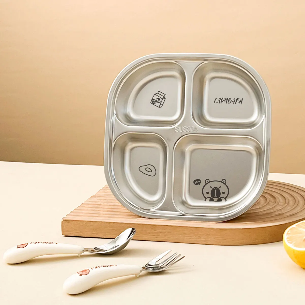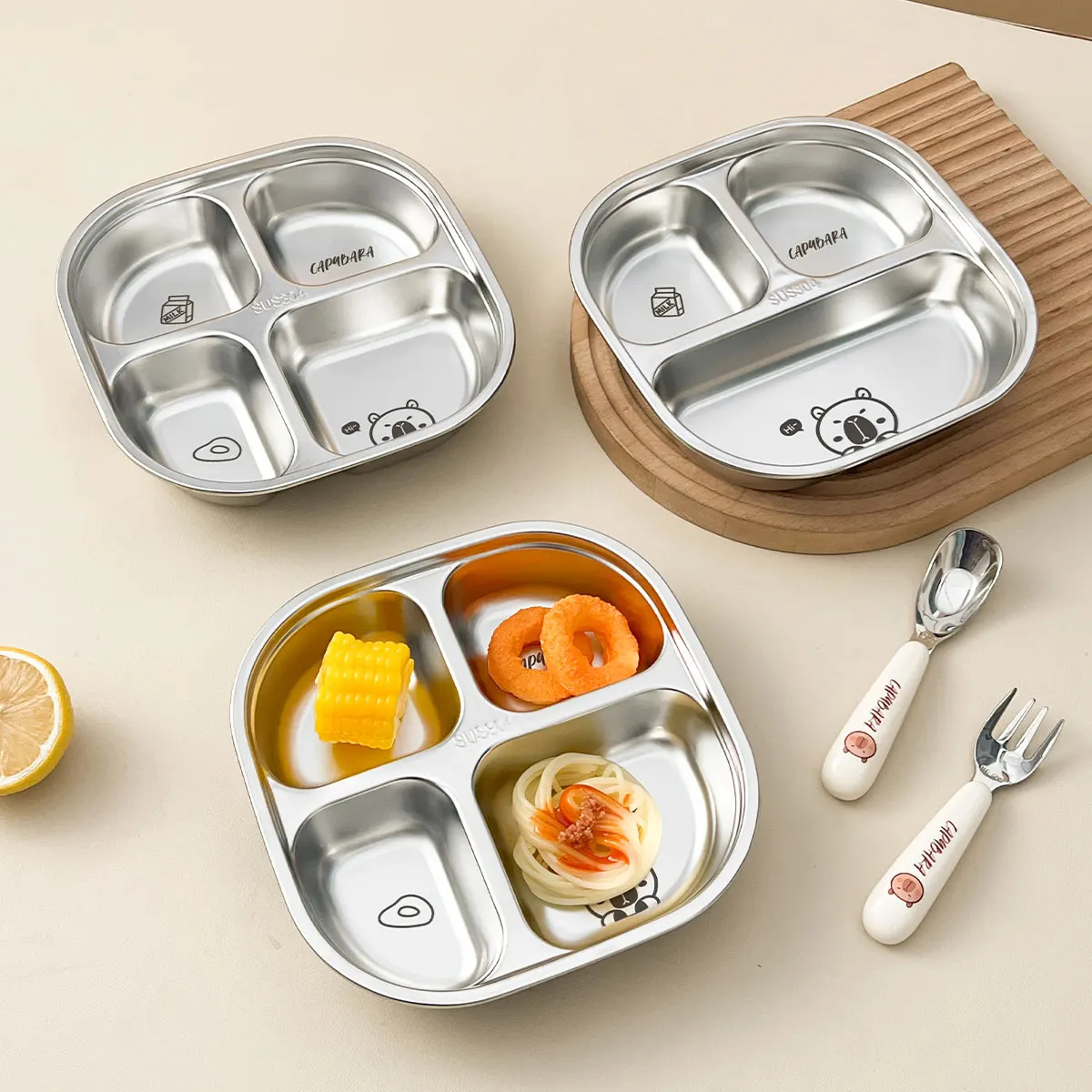 3/4 Grids Food Plate Dishes 304 Stainless Steel Divided Dinning Plates