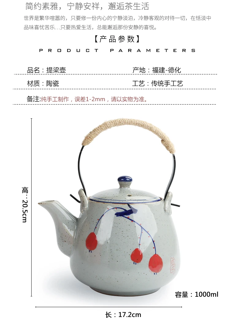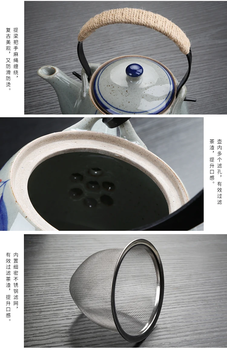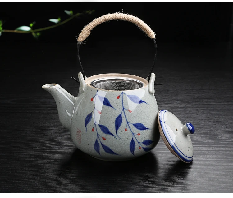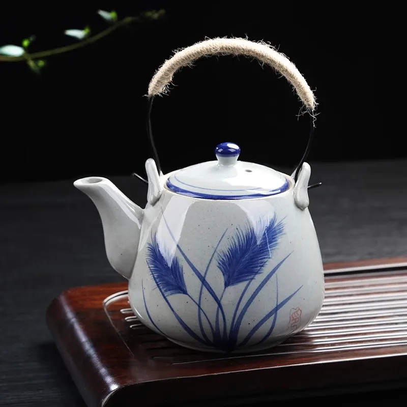 Ceramic Large Teapot With Handle Vintage Hand-painted Blue-and-white Porcelain