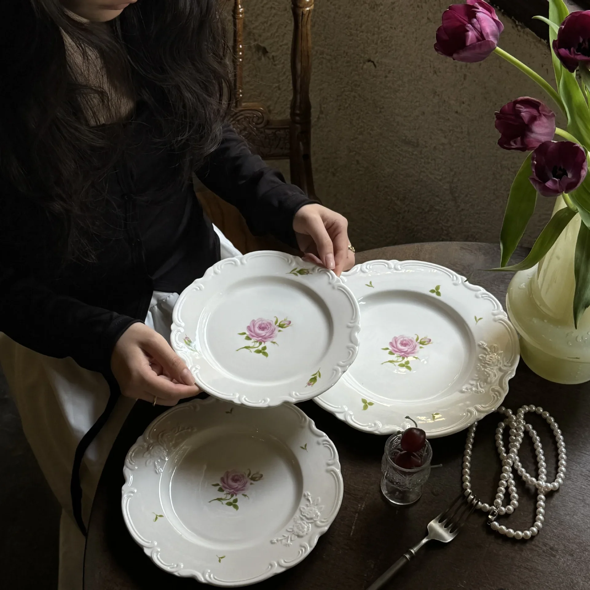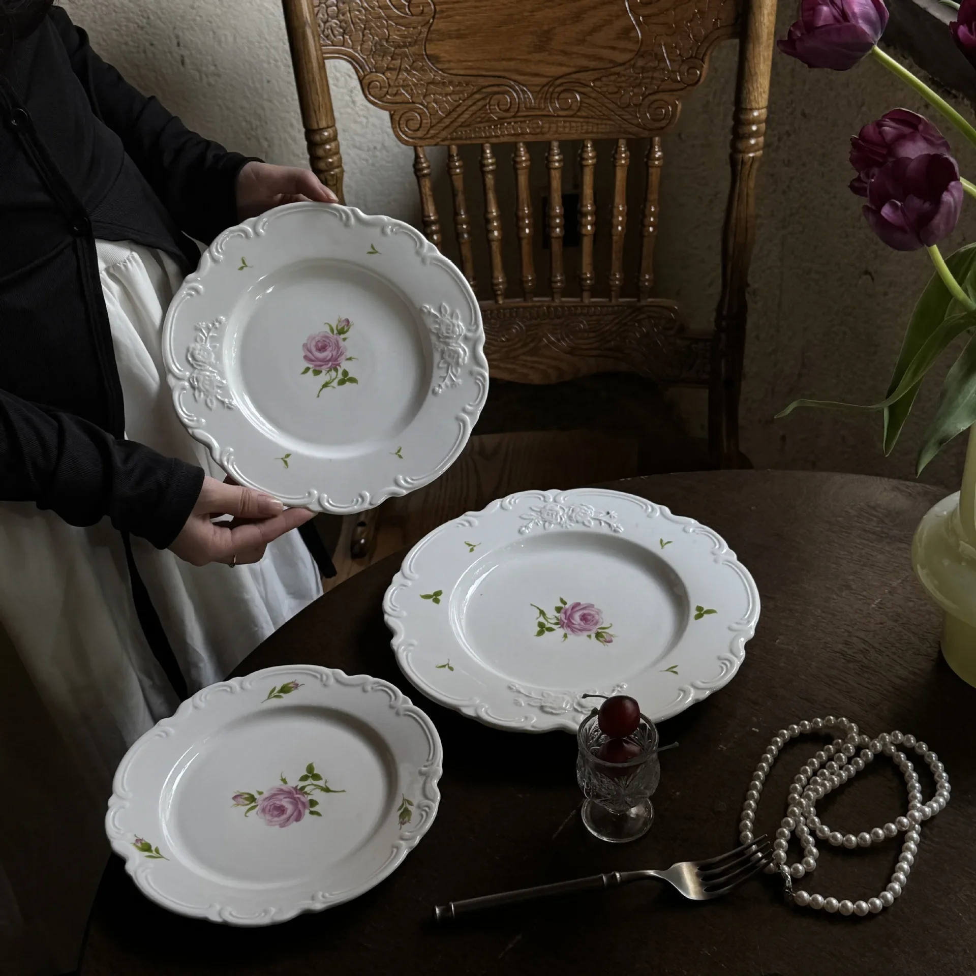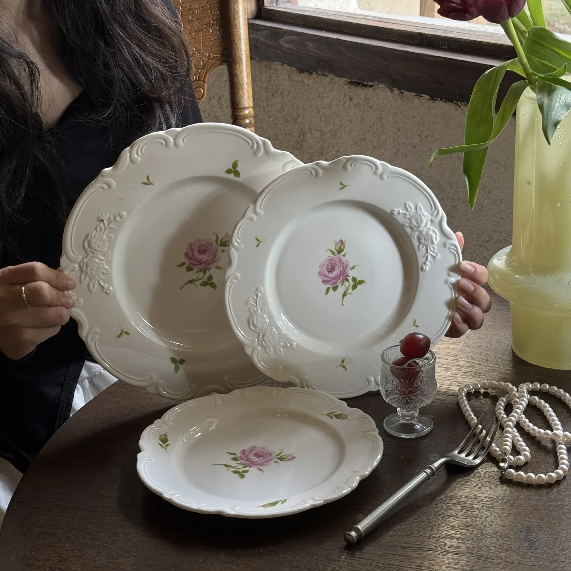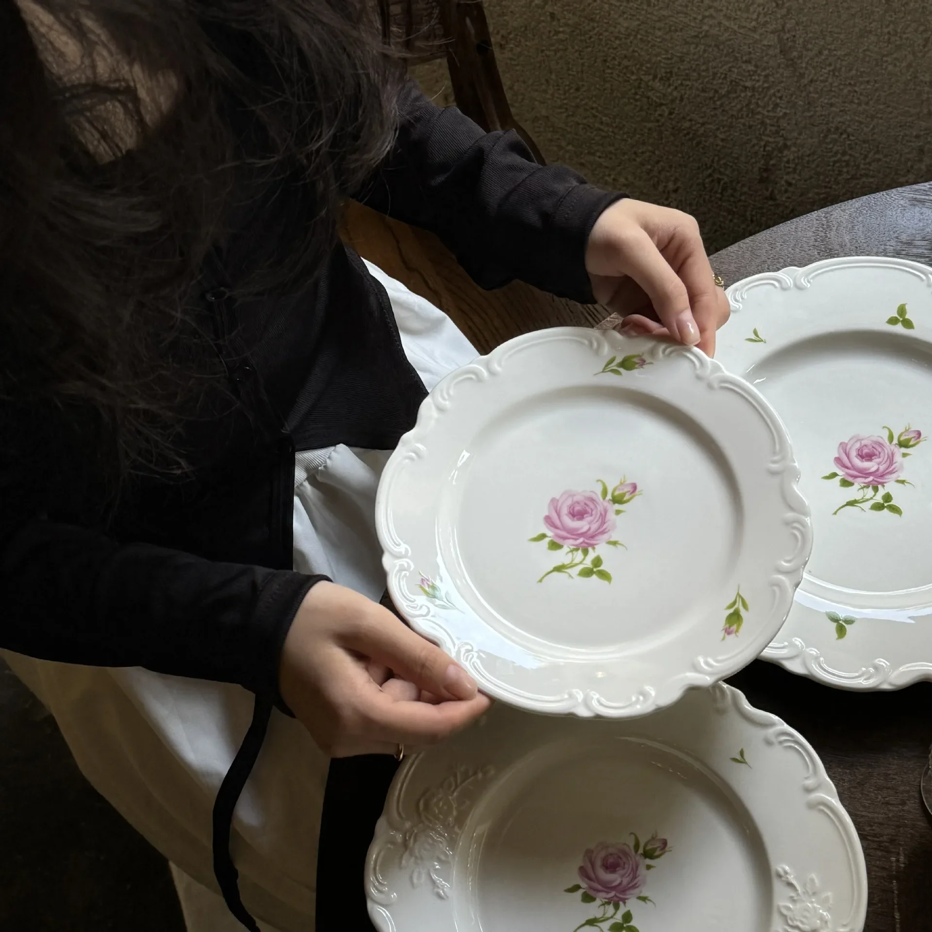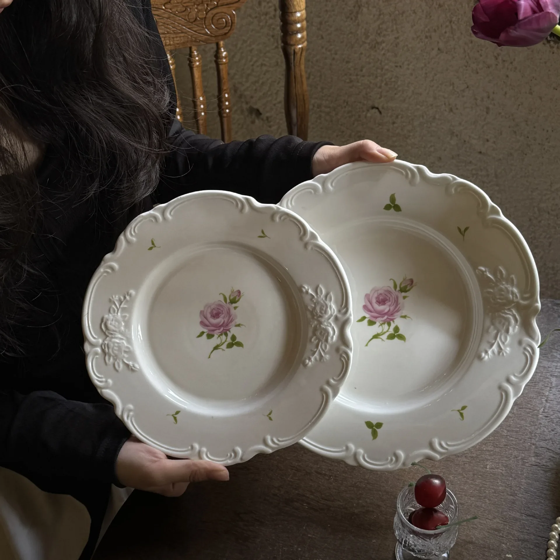 French Vintage Lace Pink Rose Embossed Ceramic Plate
