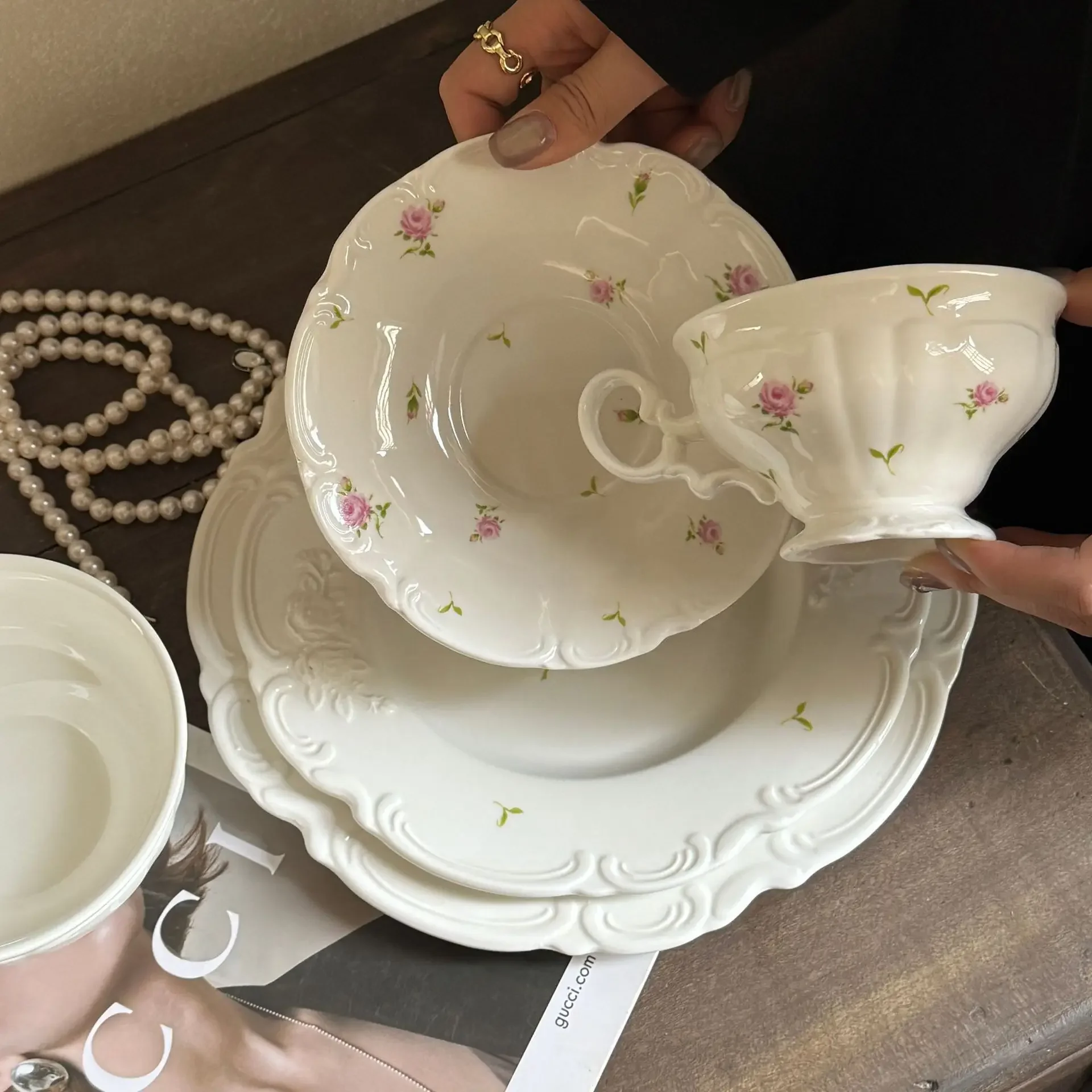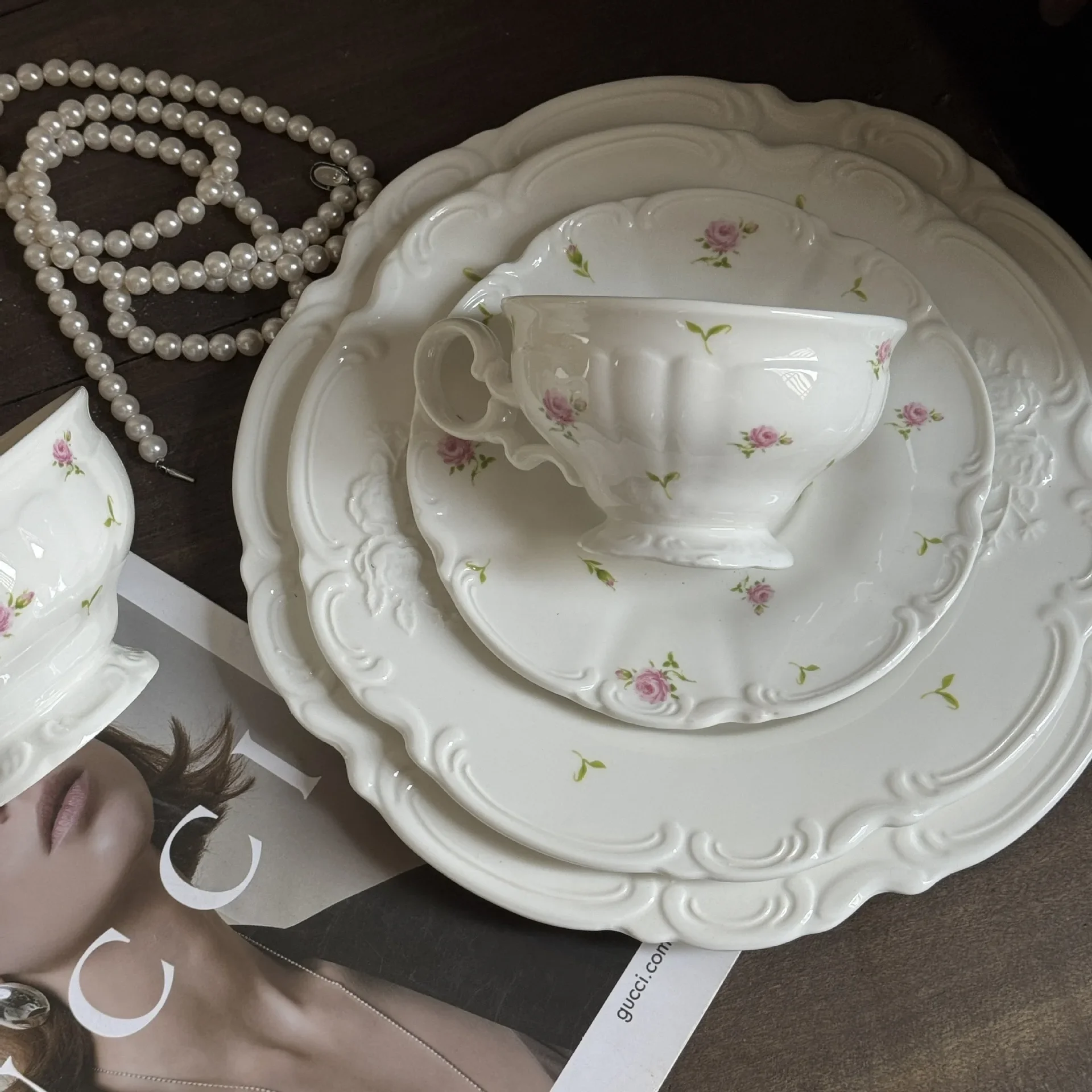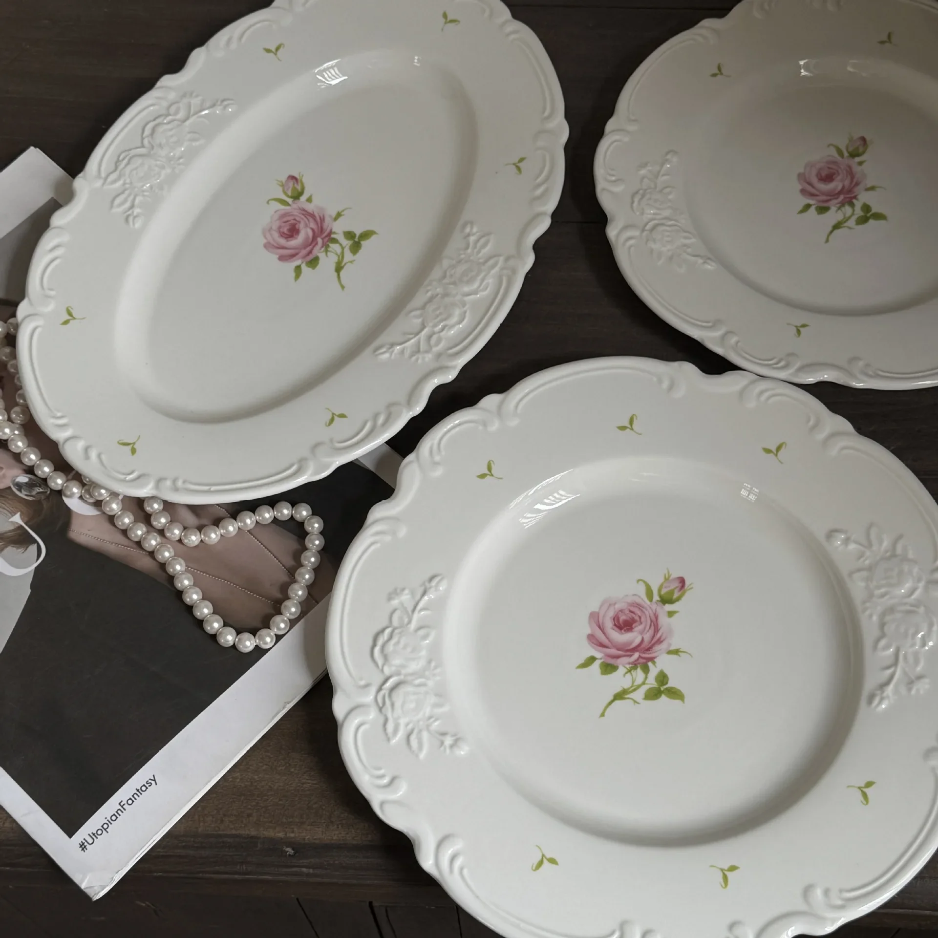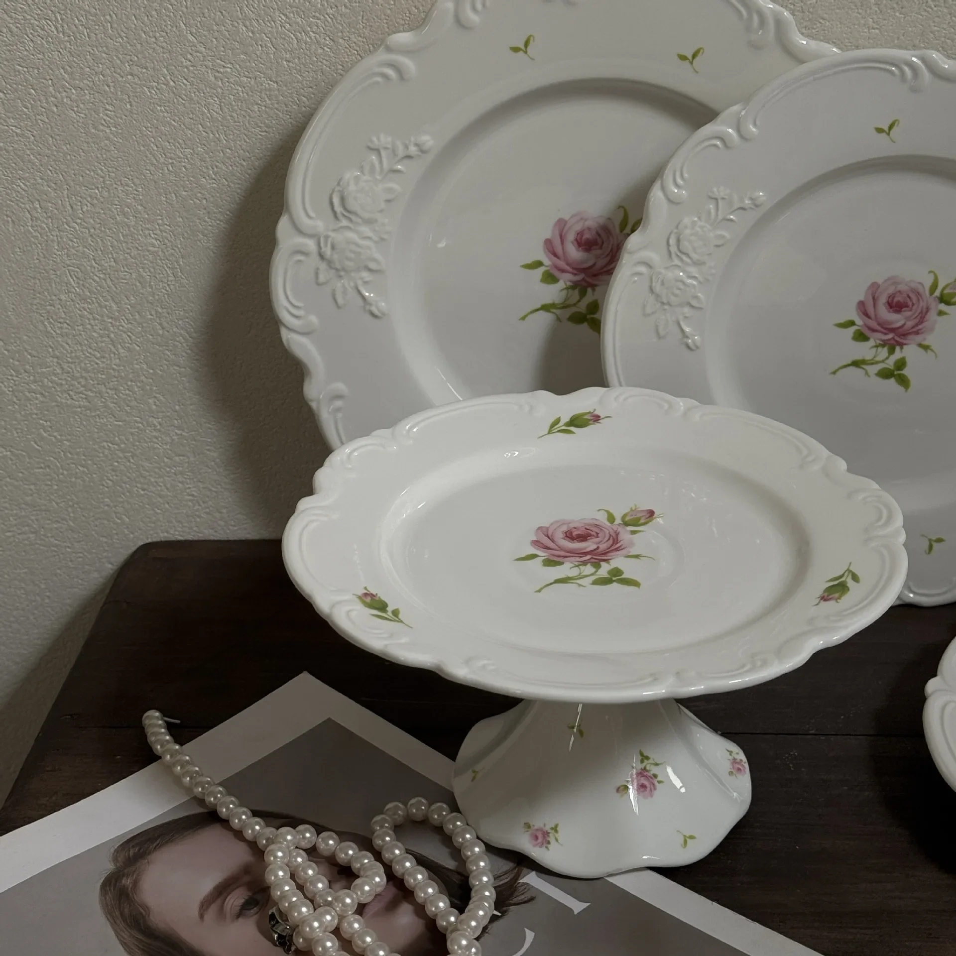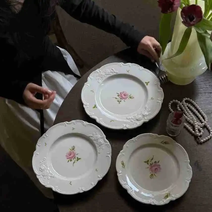 French Vintage Lace Pink Rose Embossed Ceramic Plate