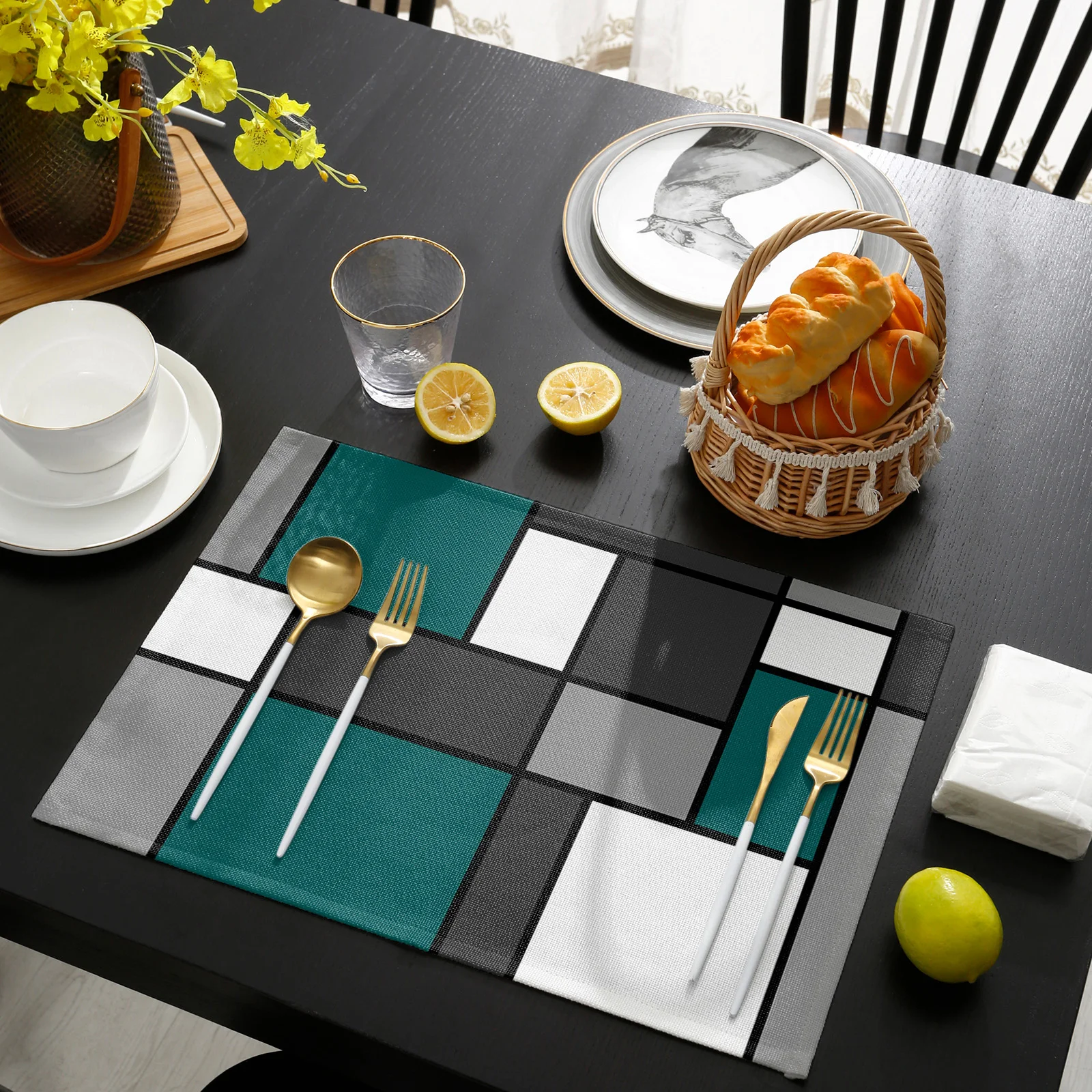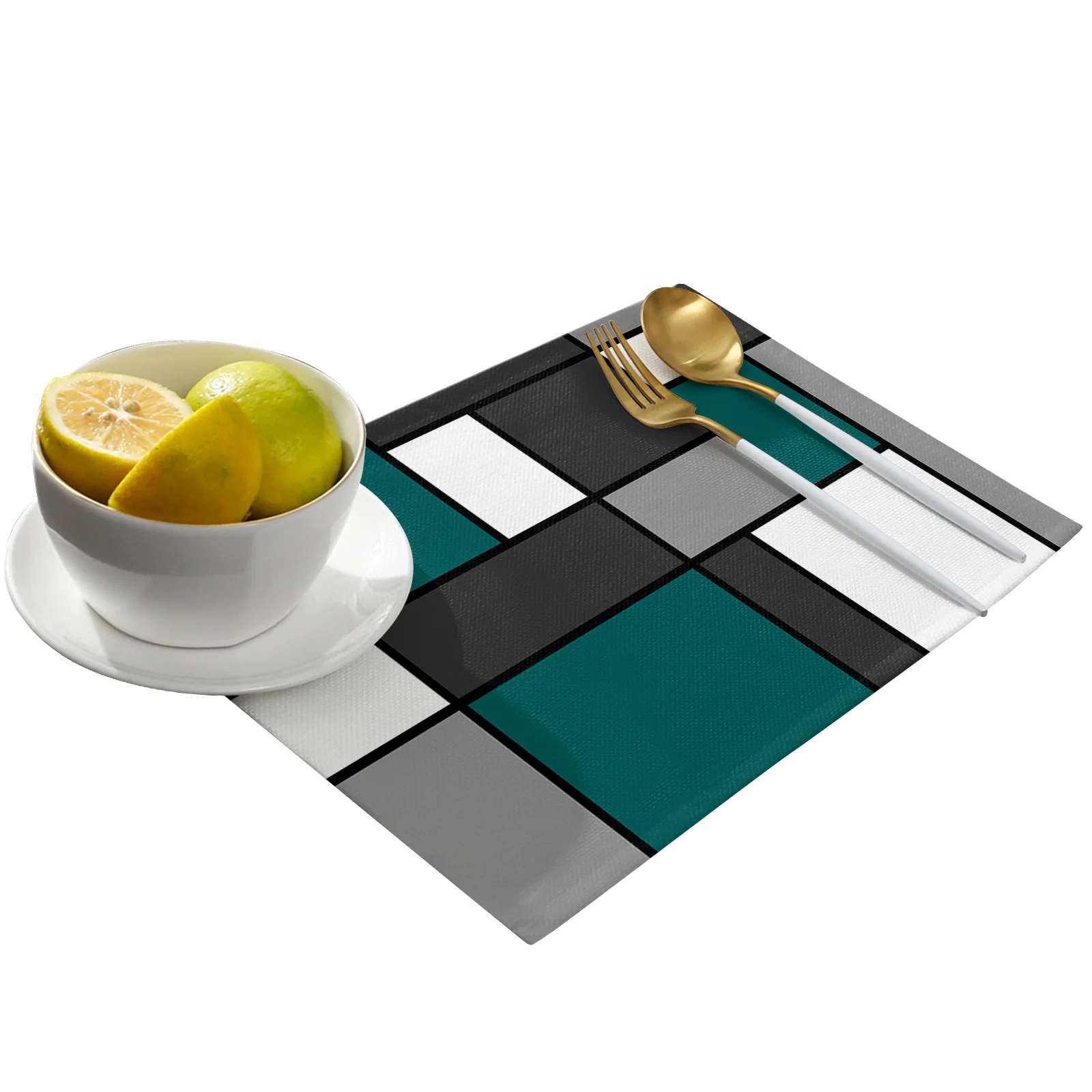 Geometry Blue-Green Abstract Placemat for Dining Table Tableware Mats Kitchen Dish Mat Pad 4/6pcs Table Mat Home Decoration
