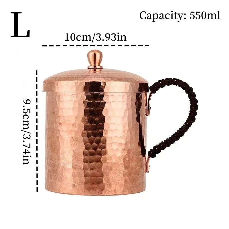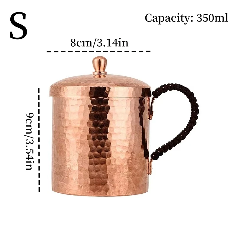 Handcrafted Vintage Pure Copper Coffee Cup, With lid
