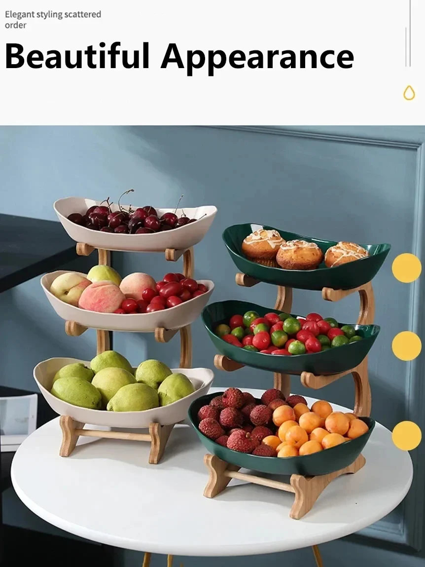 Luxury Nordic Snack Storage Plate Multilayer Bamboo Shelf Creative