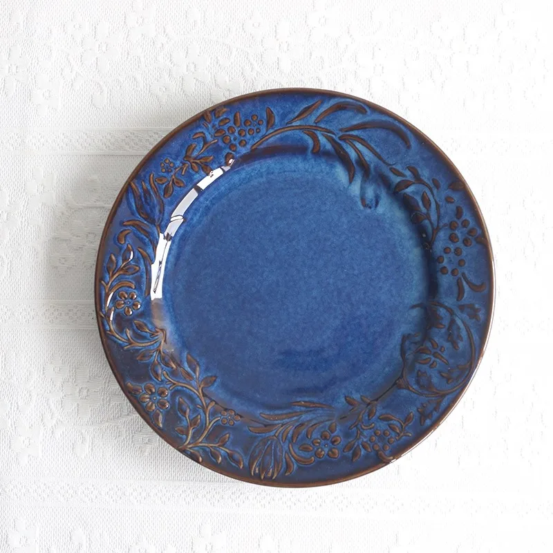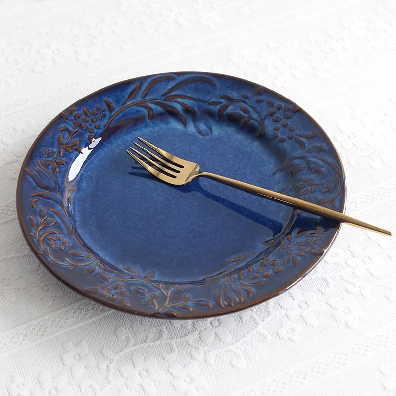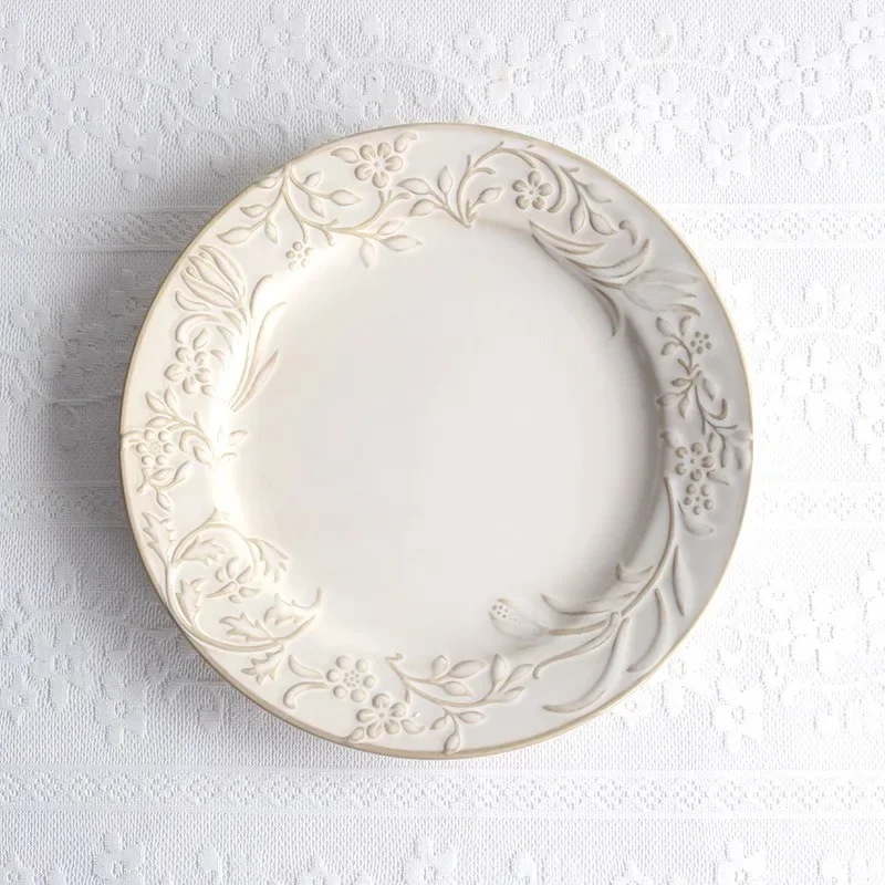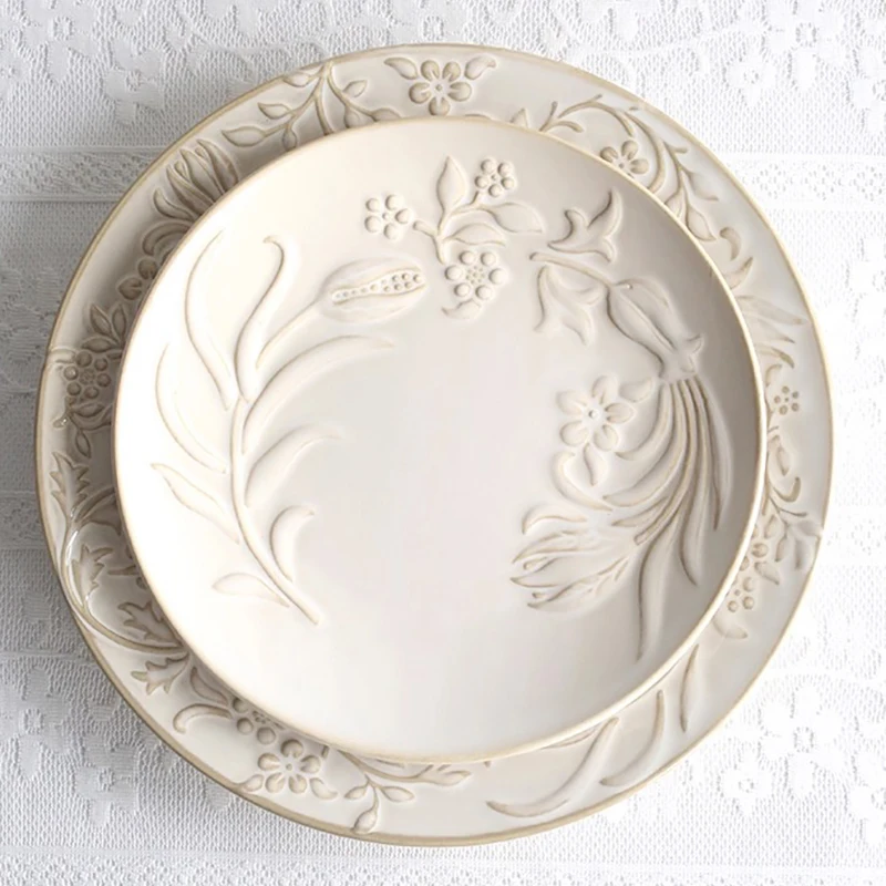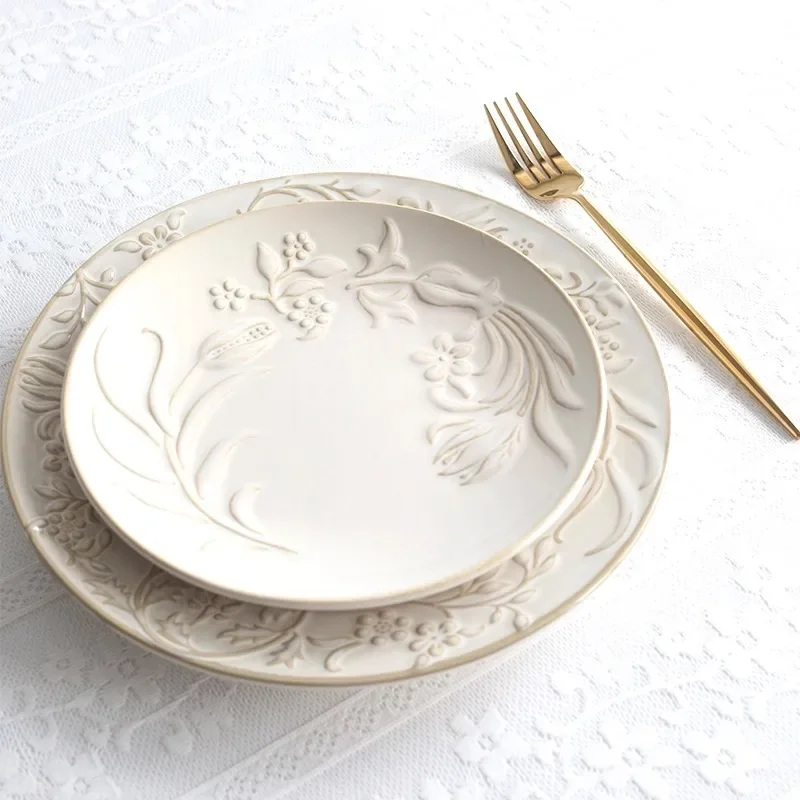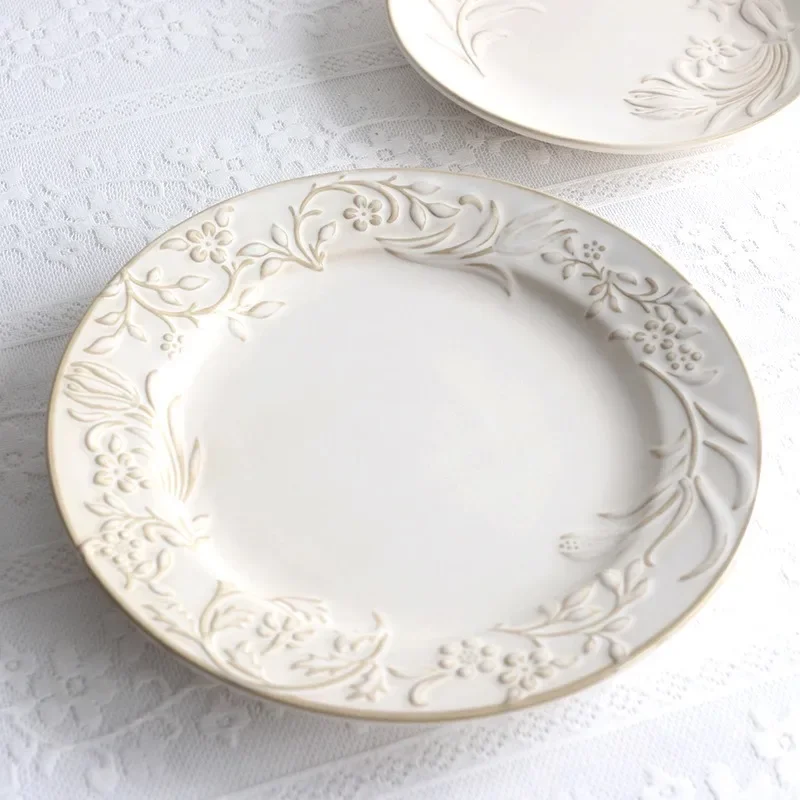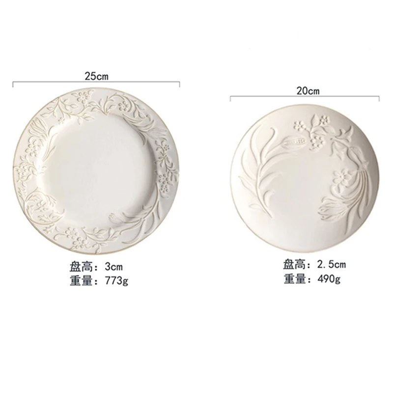 Relief Floral Ceramic Plate Restaurant Steak Plate Cuisine Tableware