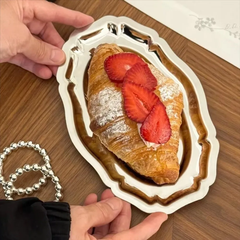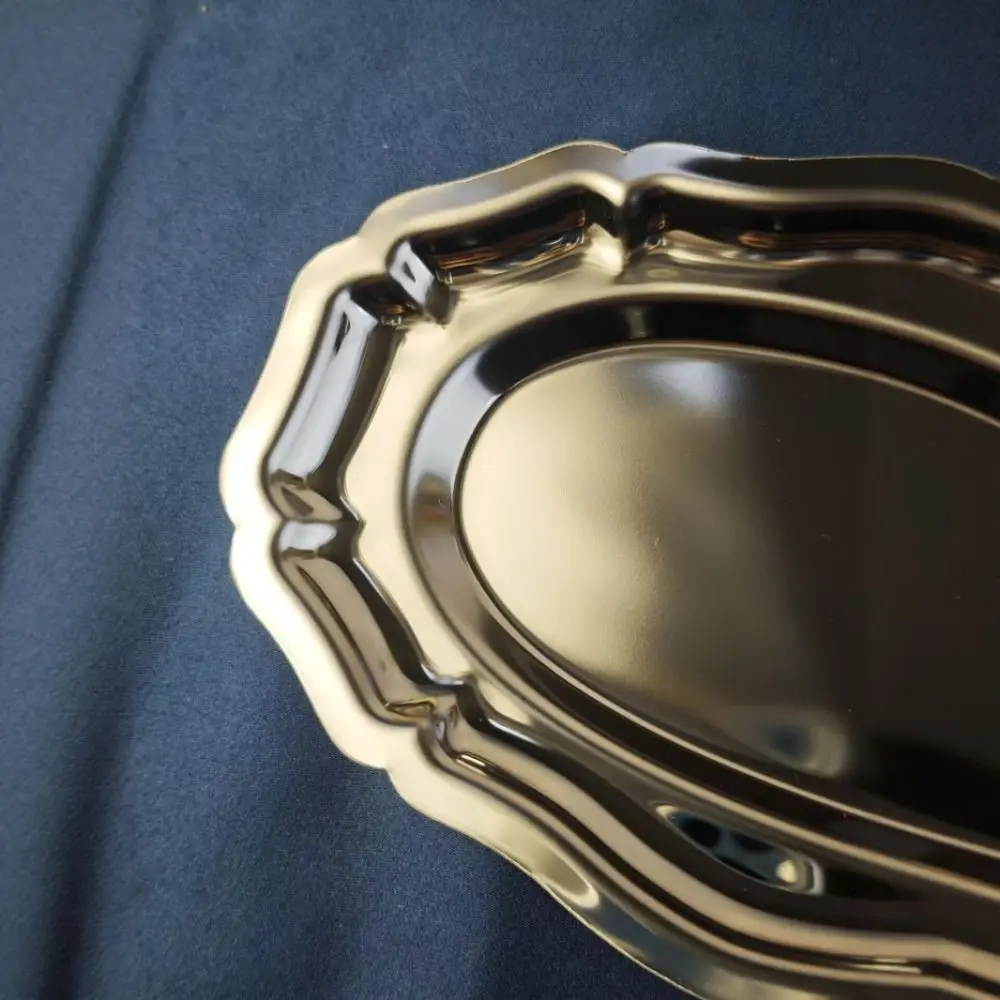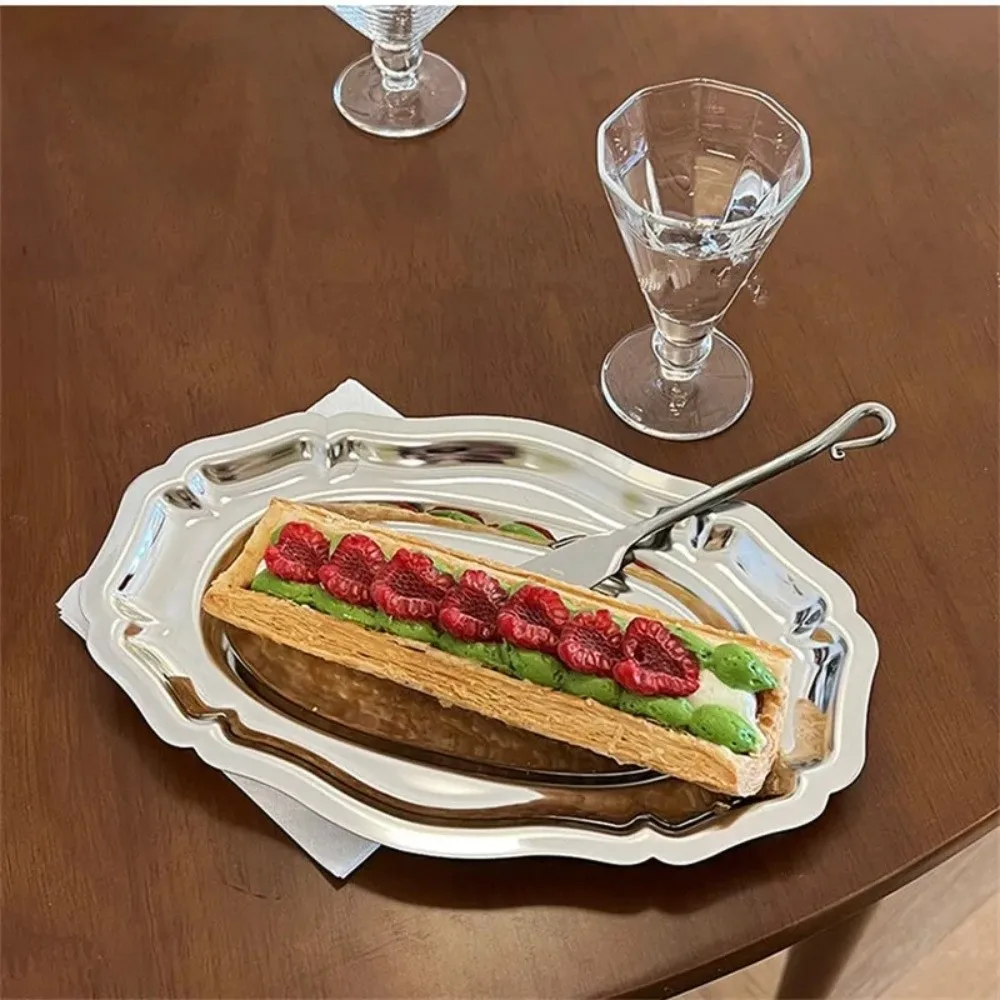Vintage Mirror Face Cake Tray Stainless Steel household Dessert Plate