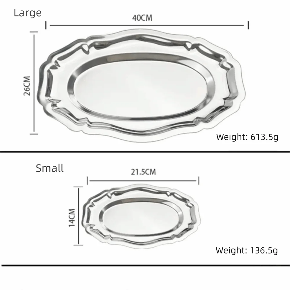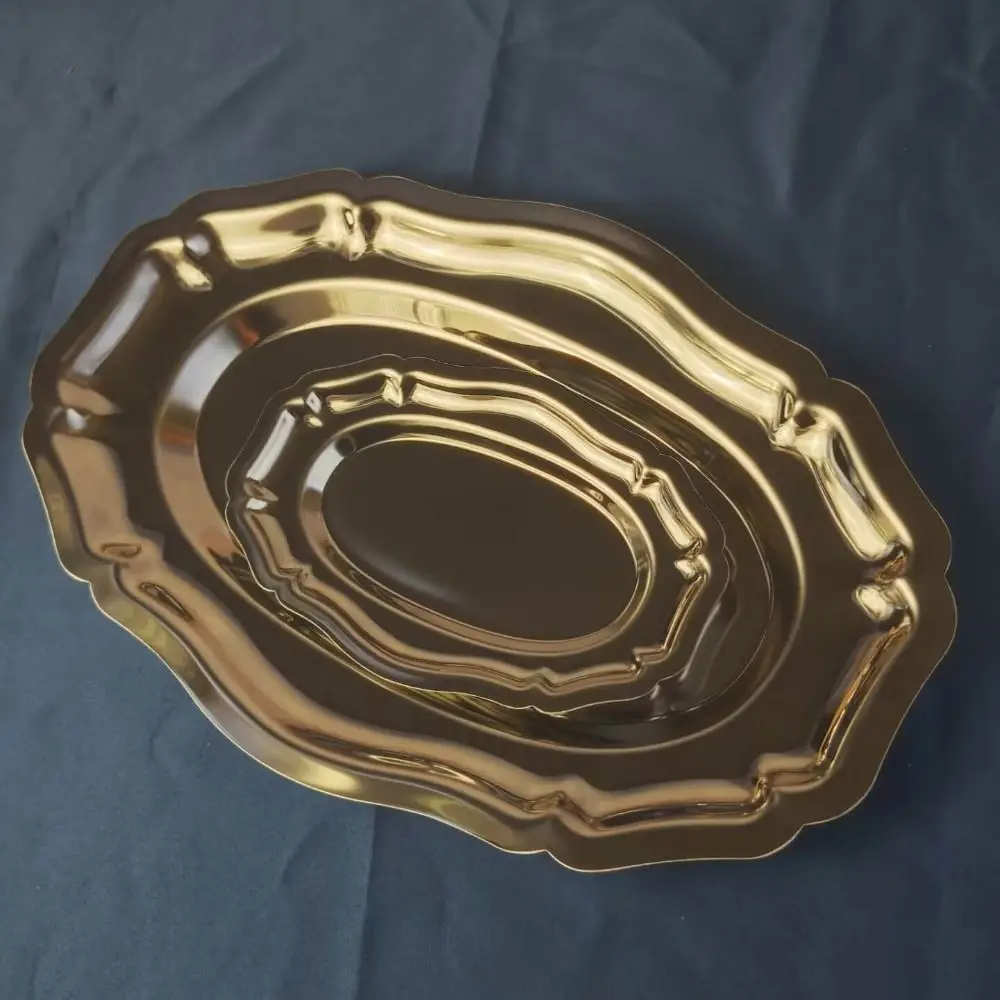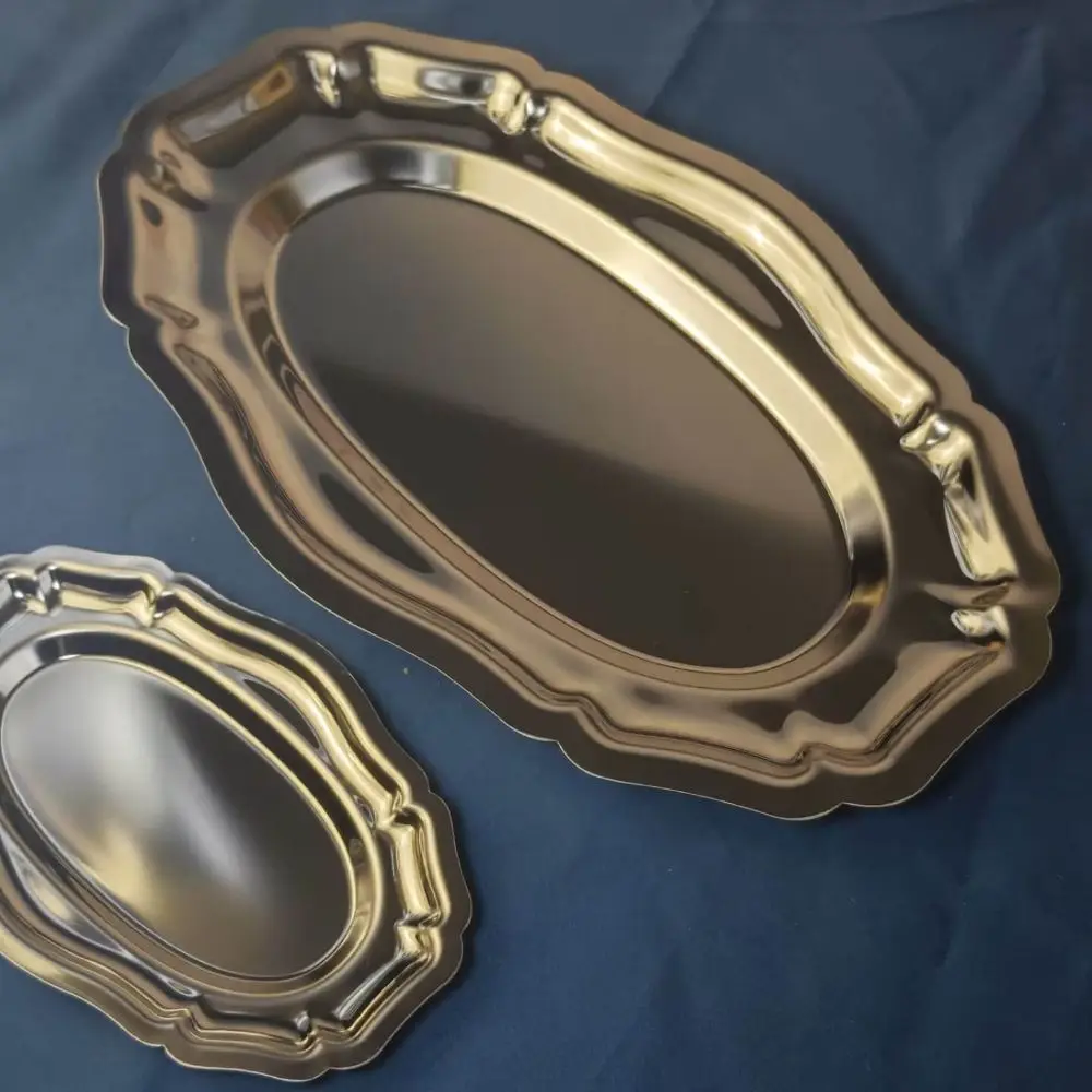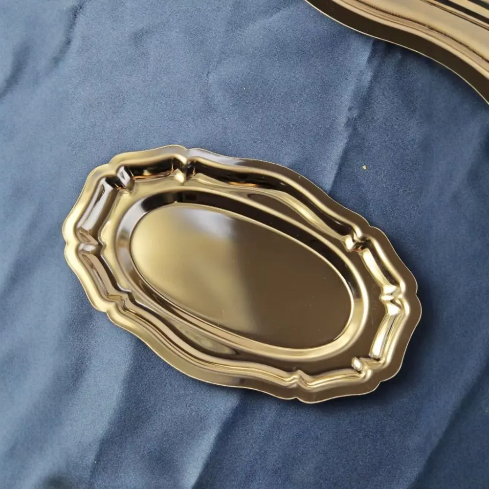 Vintage Mirror Face Cake Tray Stainless Steel household Dessert Plate